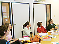 「午前のクラスは、リスニングで、今日は臨死体験やテレパシーについての会話のテープを聞き、その後で問題に答える形式でした。午後のクラスでは、レジメ(履歴書)作成をしました。多くの学生が、実際に英語圏で就職できたらいいと思っているので、このレジメ作成はとても大切です。来週のこのクラスでは、インタビュー(面接)の練習をし、それから、ジョブフェアーに行って、レジメを提出してくる予定になっています。」